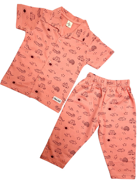 Dark blue Pink Pineapple Unisex Cotton Night Suite
