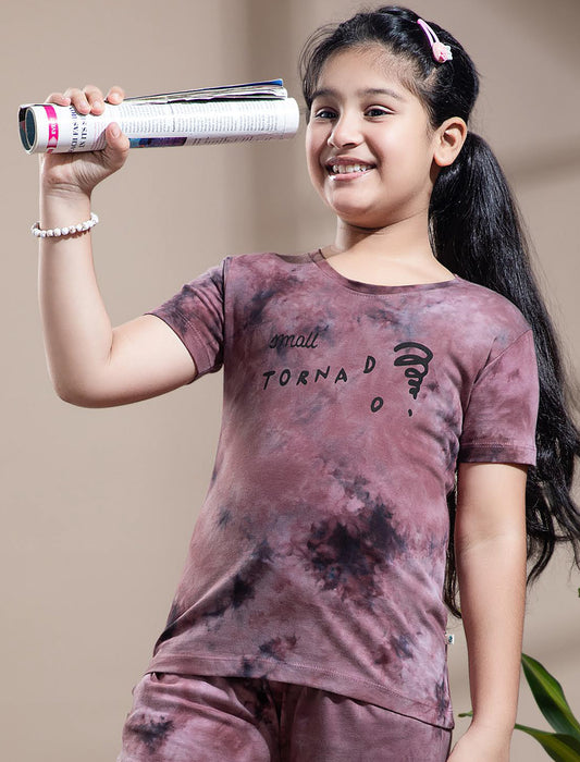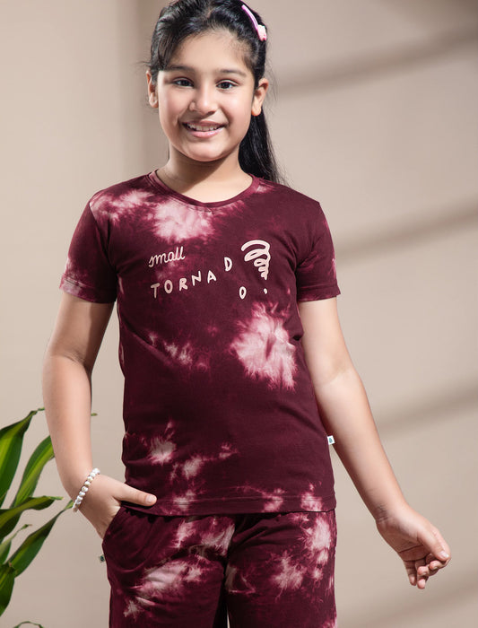 Unisex Tie Dye Cotton Bermuda Sets - Dark Maroon Tornado