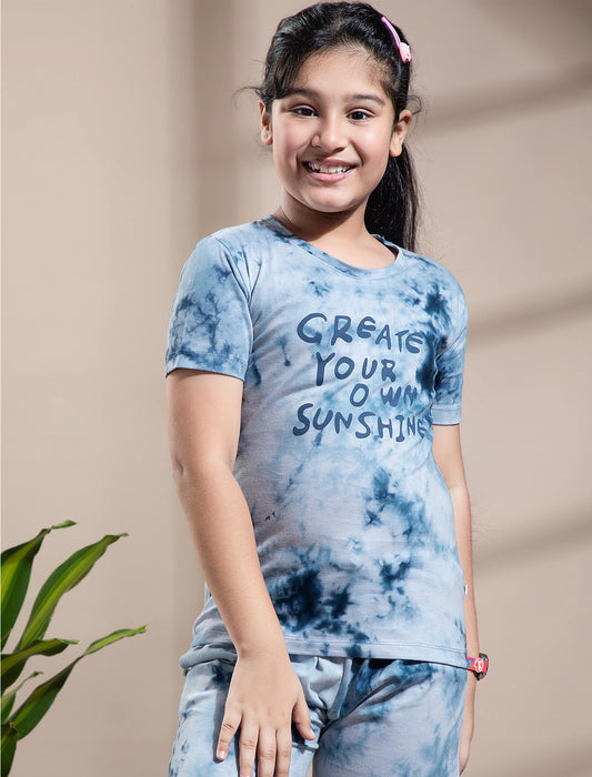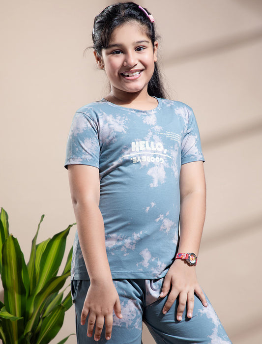 Unisex Tie Dye Cotton Bermuda Sets - Sky Blue Hello