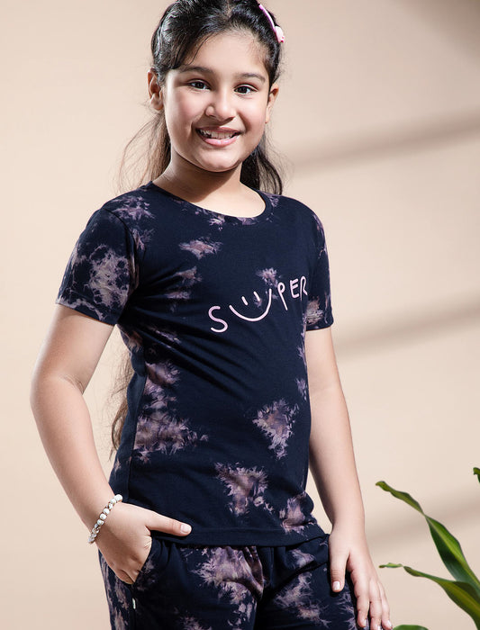 Unisex Tie Dye Cotton Bermuda Sets - Navy Blue Super