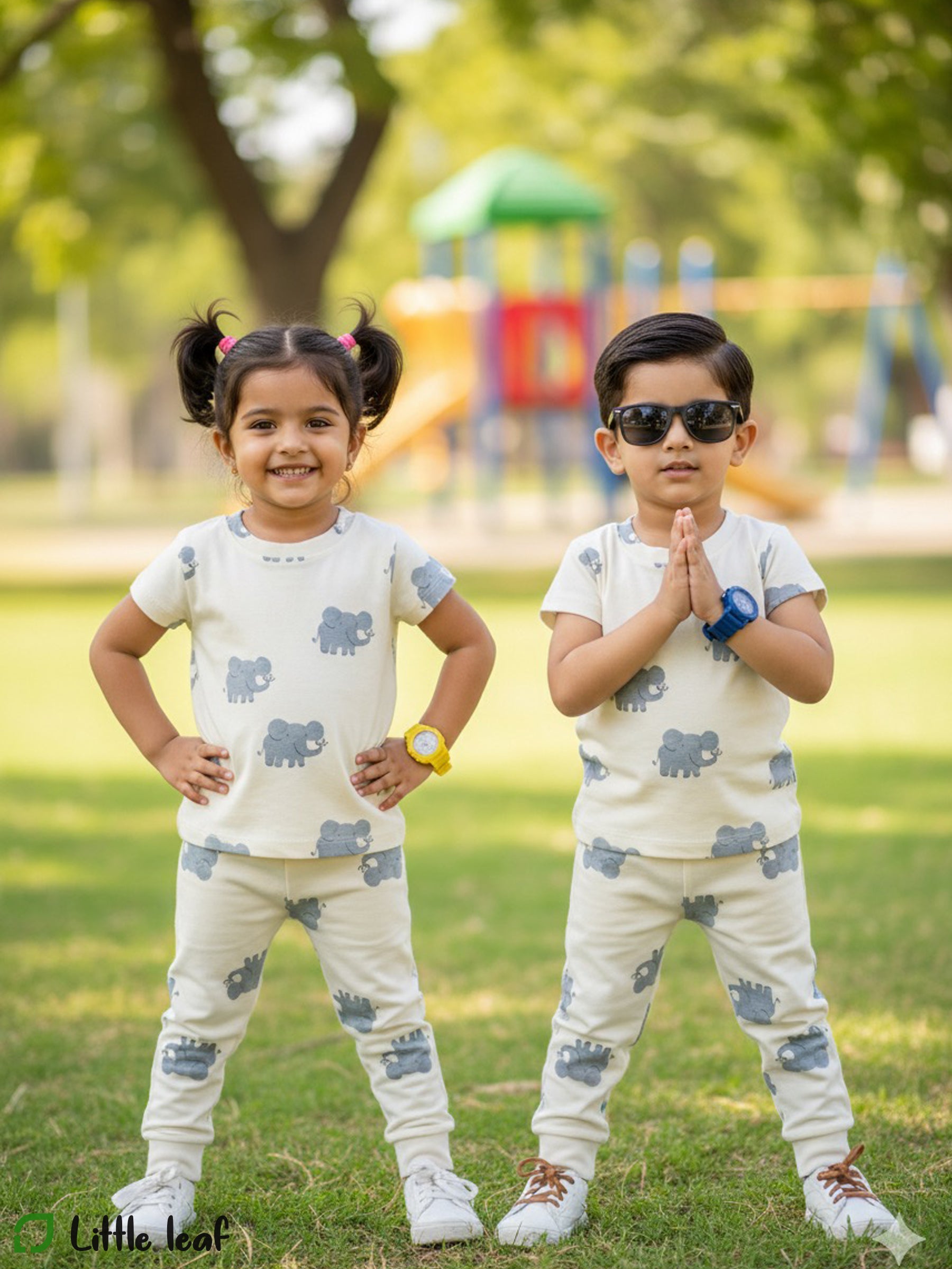 Unisex Cotton Night Suite - White Elephant